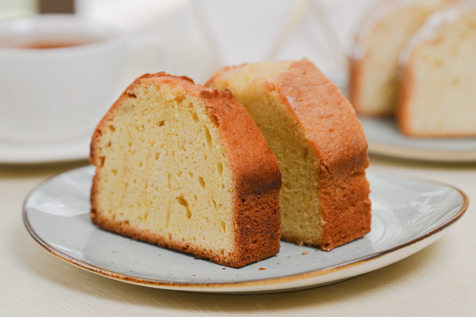 Moist vanilla tea cake made with aromatic Madagascar vanilla beans.